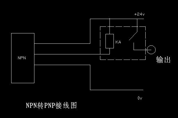 如果是PNP轉(zhuǎn)NPN,把圖中繼電器線圈一端接傳感器的輸出信號(hào)線,另一端接0V,再從0V引出一根線經(jīng)過繼電器的常開點(diǎn)接到PLC的輸入端。這樣就完成了PNP轉(zhuǎn)NPN。