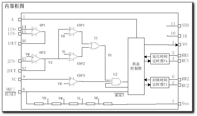 9 VC 觸發禁止端。當Vc<VR時禁止觸發;當Vc>VR時允許觸發(VR≈0.2VDD)