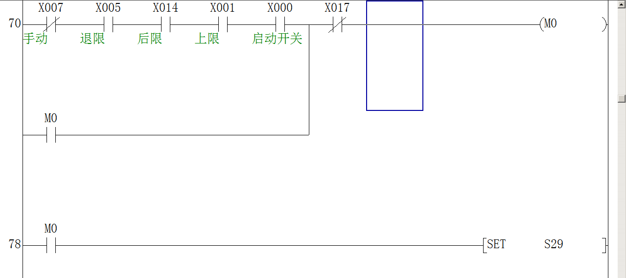 這個程序按到啟動后,M0只亮一會兒就不亮了,這是為什么 呢
