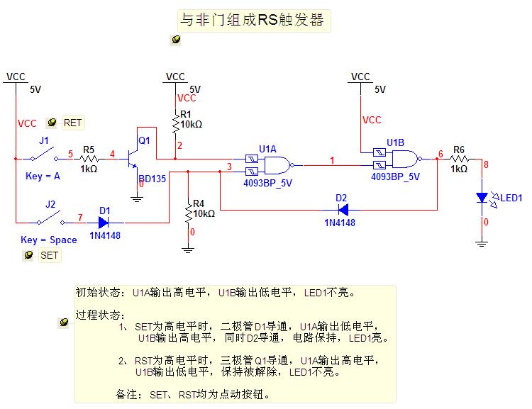 同樣的IC,不一樣的邏輯組成RS觸發(fā)器。