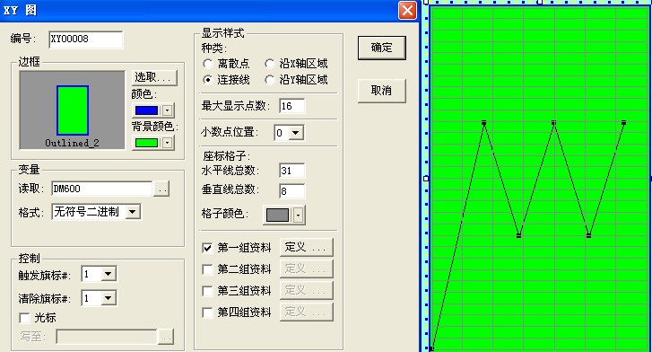 像海泰克這樣 DM600在PLC對(duì)應(yīng)的是曲線的點(diǎn)數(shù)  在威綸里面怎么寫呢 其中X取值來(lái)自DM572               Y取值來(lái)自DM542  求高手解答一下