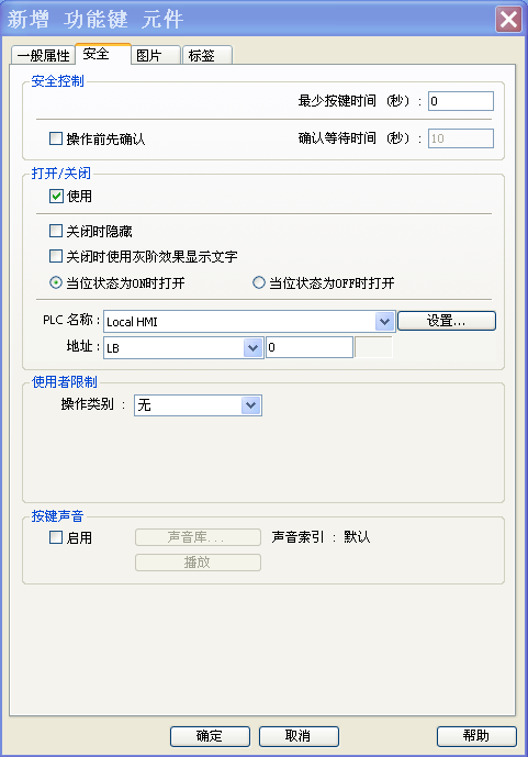 指定生效位 ON ,該元件可用,否則該元件無效