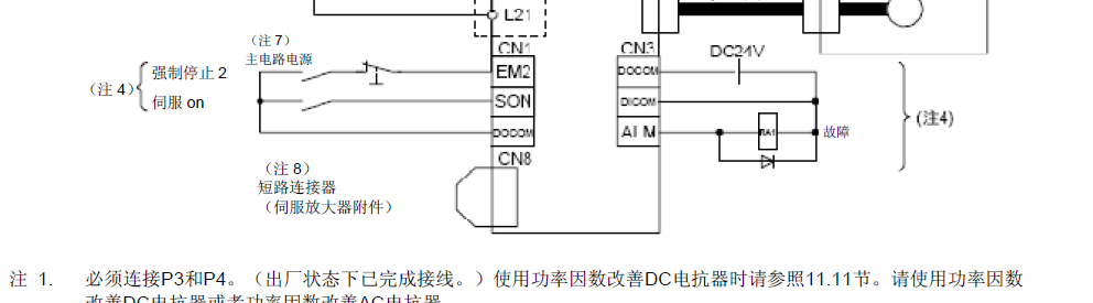 各位老師,大家好,我是初學PLC及伺服控制,因為只需要做最簡單的正反轉,及幾段無精度的位置控制,所以,不需要學的很深,自己也買了3UPLC及MR-4J4-20A放大器及電機,現在,光自己學,感覺壓力很大,沒有頭續,自己按說明書接線,是報警,因為附圖中控制部分不會接線,沒有接,所以,肯定不行,這部分我看不明白怎么去接線,大家可否給我講一下這部分是怎么去接線的,DC24V電源我也買過了,沒敢接上,怕把放大器搞壞了。
