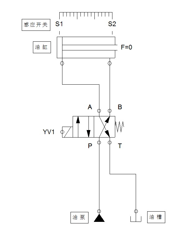有一控制要求:器件  油缸:1 個  電磁閥:1個   位置開關:前位 1個  后位  1個  按鈕開關(常開自復位):1 個  配套液壓站、油泵