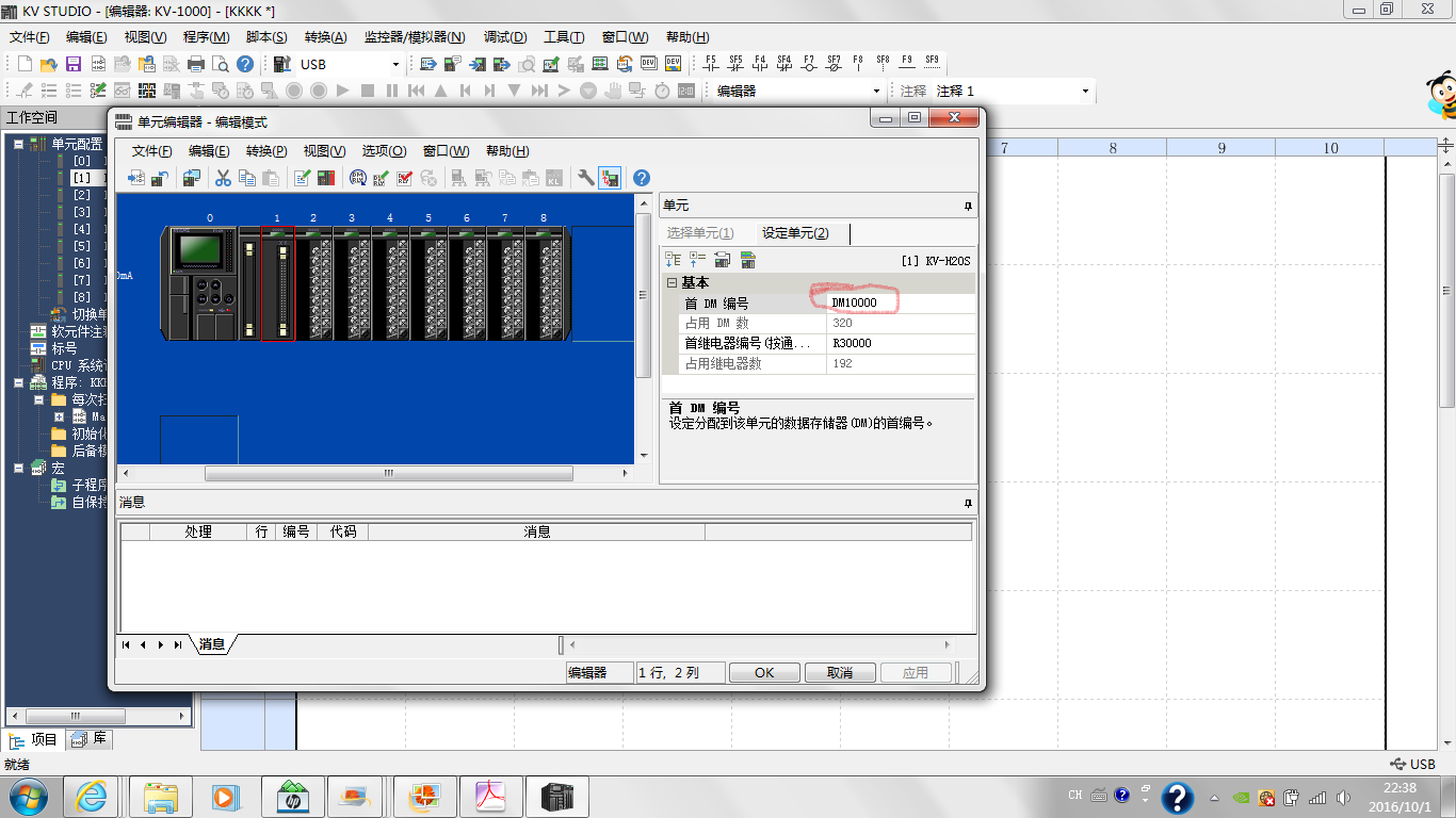 你按下擴展模塊紅燈看下KV-1000視窗提示什么報警信息。