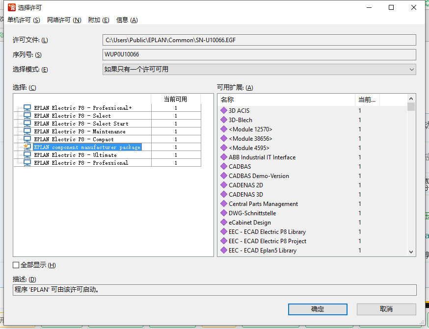 點(diǎn)擊第一個(gè):EPLAN electrica p8 professional,然后再單擊“確定”。