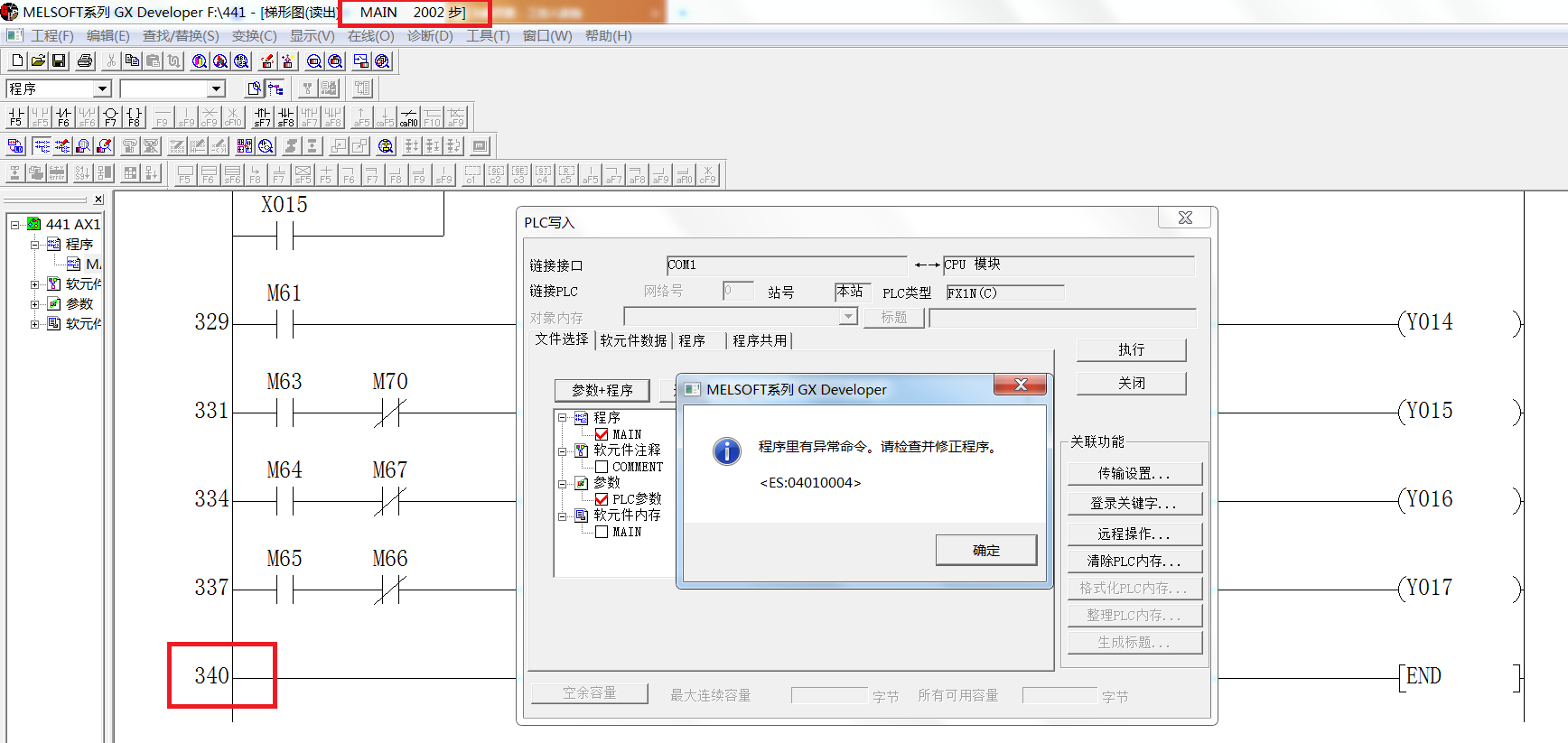 程序讀出來2202       可是實(shí)際只有340行。我在下載回去就提示指令異常