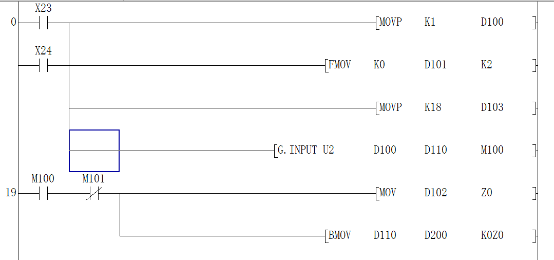 用[G.IPUT  U2 D100 D110 M100]讀出的重量數據出現了問題。
