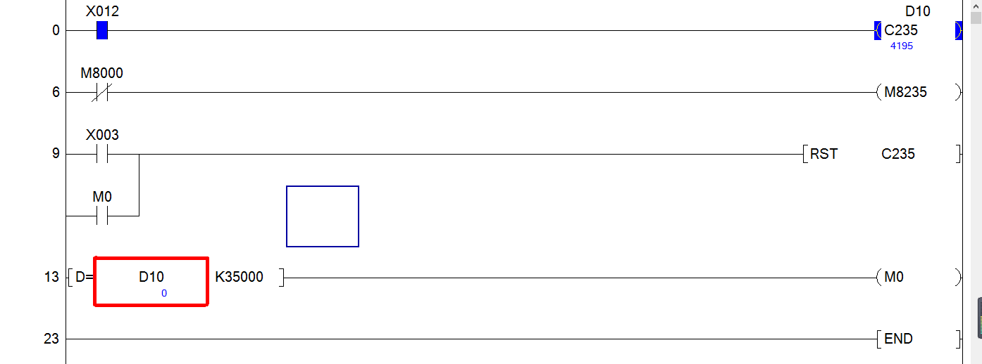 請問編碼器用高速計數器C235 D10為什么不顯示脈沖當前值,各位指點。