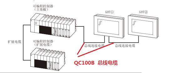 使用三菱QC100B電纜  連接Q系列PLC和GOT2500系列觸摸屏進行通訊,