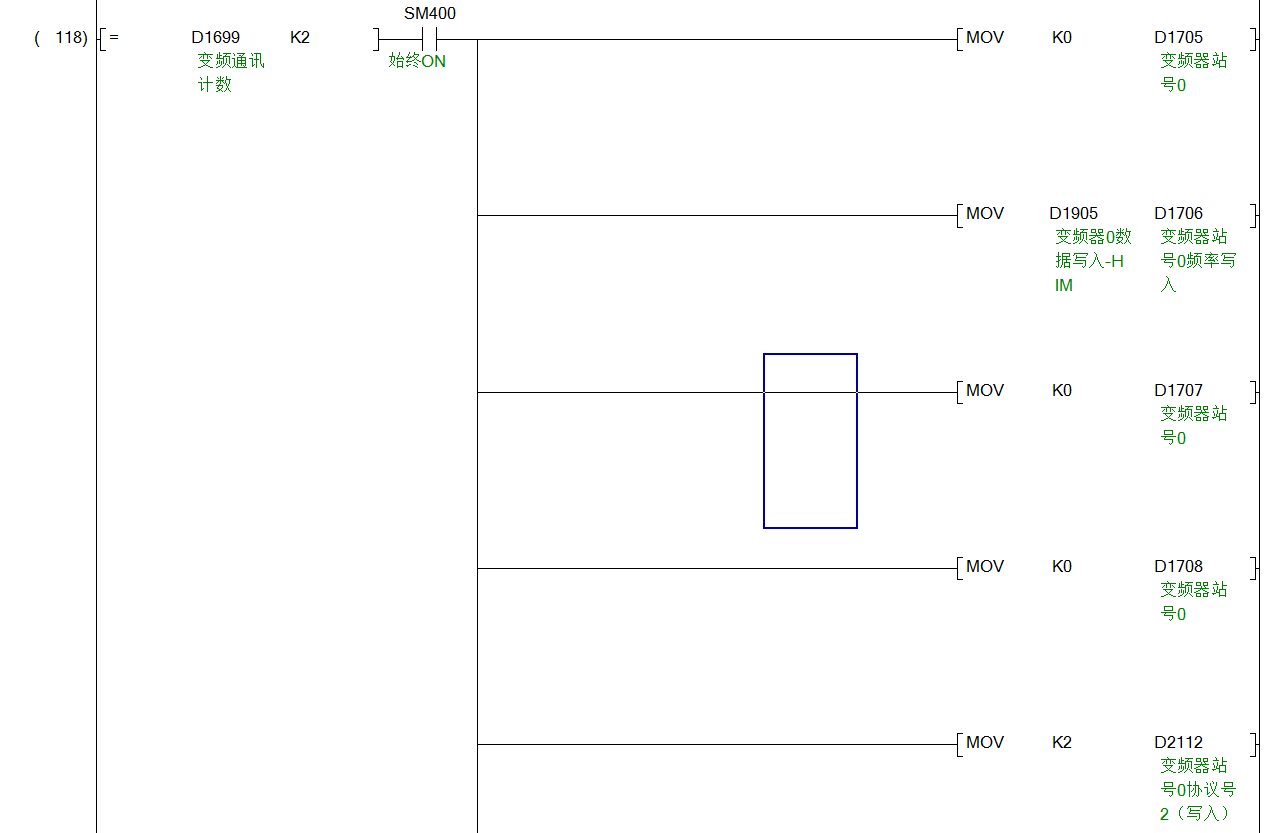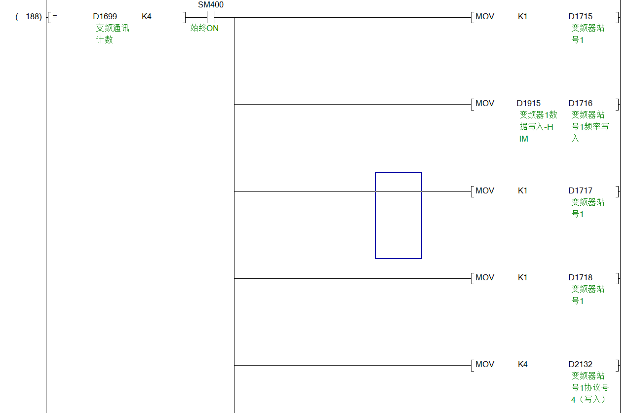 因?yàn)檫@個(gè)指令的執(zhí)行機(jī)制是先執(zhí)行第一條數(shù)據(jù),收到響應(yīng)后再繼續(xù)執(zhí)行,關(guān)掉變頻器之后就卡死在其中的一步了,所以通信中斷。