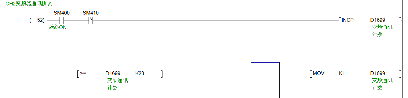 用QJ71C24-R4,CH1跟三菱變頻器E740做通訊,專(zhuān)門(mén)協(xié)議做有2臺(tái)變頻器通訊,如果變頻器都打開(kāi),通訊是正常的讀取頻率和寫(xiě)入頻率都是沒(méi)問(wèn)題,如果關(guān)掉一個(gè)變頻器通訊就不行了頻率就寫(xiě)不進(jìn)去。幫忙看看能不能解決。