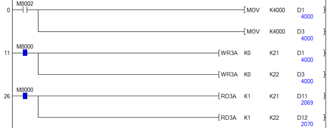 硬件配置是FX3U-16MR/ES-A + FX2N-2DA + FX2N-2AD
