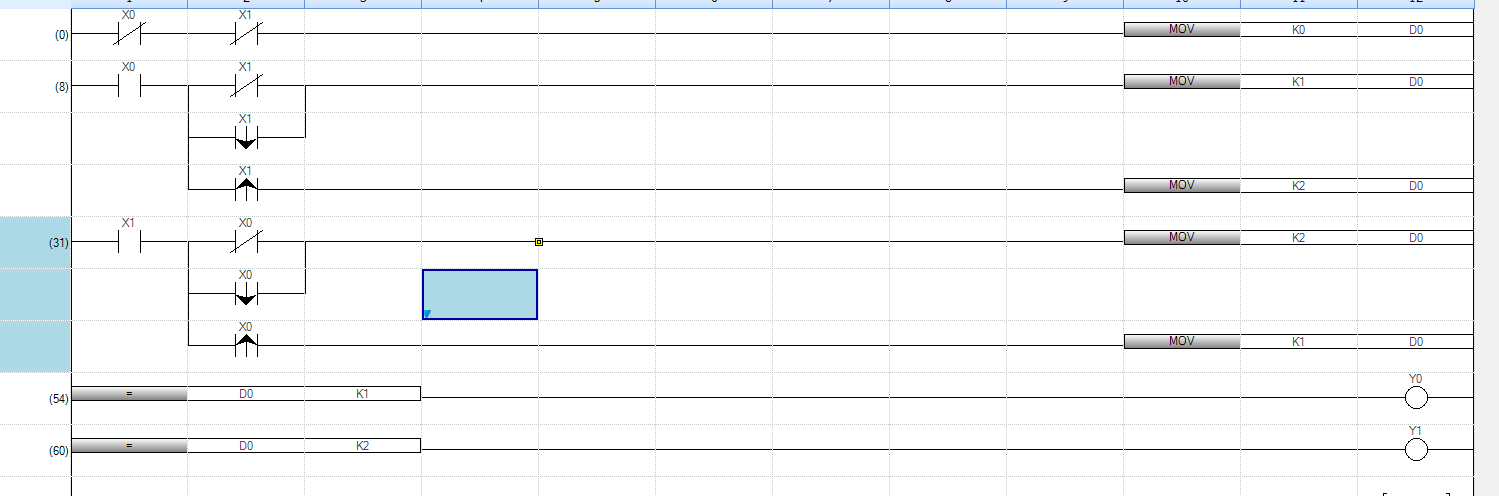 把x0  x1的開關和延信號,轉換為0和1,存入d,然后判斷d的數值