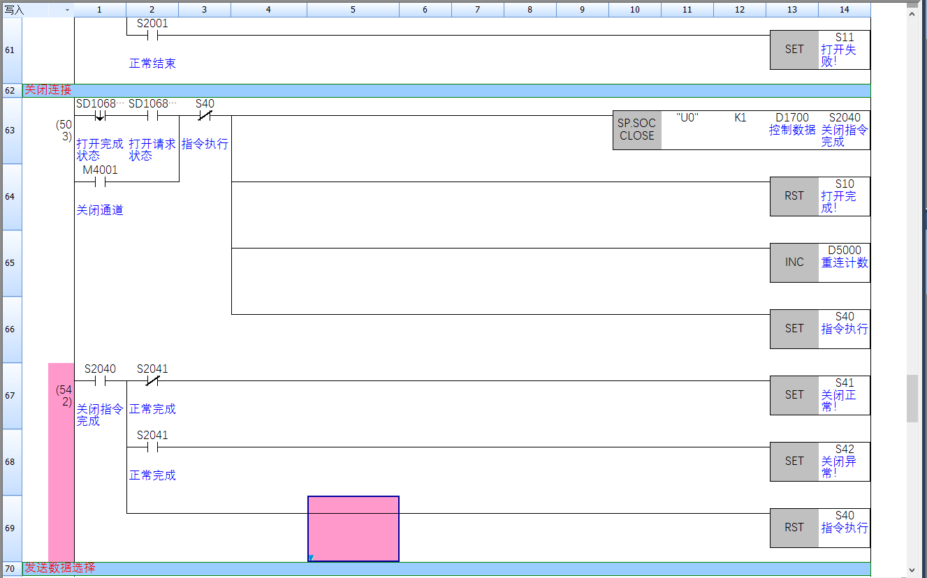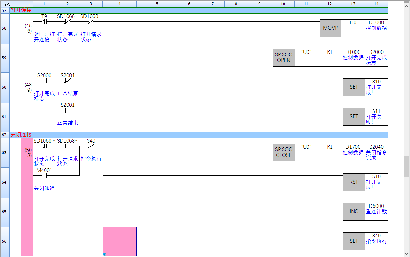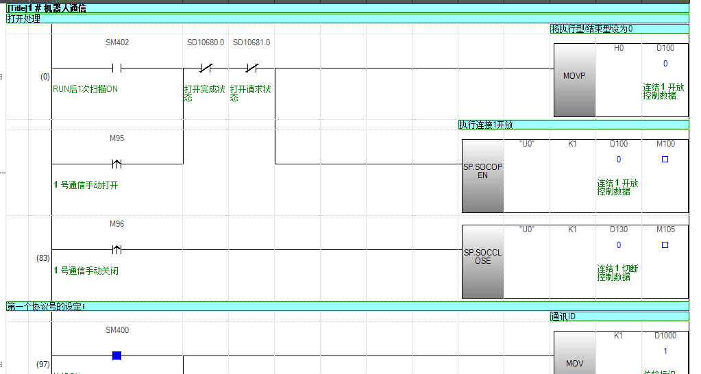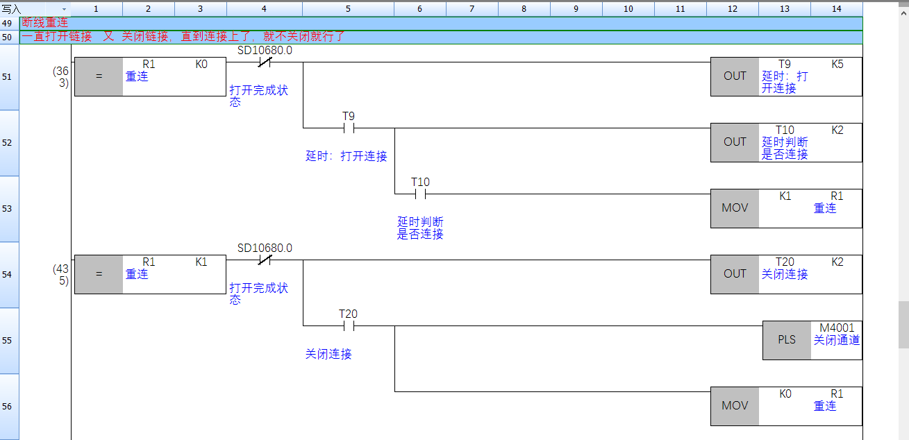 但是存在一個問題:,如果在通信過程中,機器人網線被拔掉,或者機器人被斷電,FX5U會報錯,通信斷開,把機器人網線重新插上以后,要怎么樣才能恢復通信(PLC不斷電重啟的情況下)