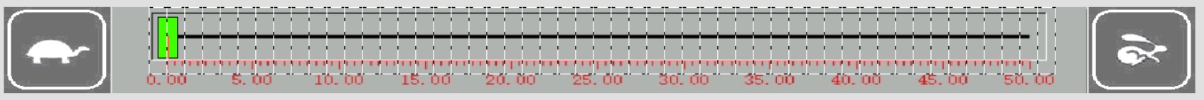 萬般無奈下,只能在刻度顯示上做手腳,無法滑動調(diào)整,那就把刻度條分成51塊,在刻度條上X方向多重復制51個間隔為0的功能為“寫入數(shù)據(jù)”的“字開關(guān)”,