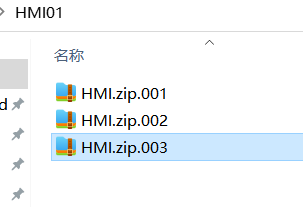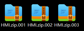 三個壓縮包分割文件放在一起,就可以解壓成HMI文件。