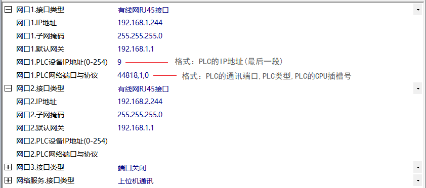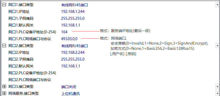 重啟讀取參數(shù)后,確認(rèn)跟之前所選擇的一致,通過‘功能’->‘網(wǎng)絡(luò)參數(shù)配置表’配置網(wǎng)絡(luò)參數(shù),如下圖 通過IGT-DSER的網(wǎng)口1連接OPCUA的服務(wù)端(opc.tcp://192.168.1.164:49320/),網(wǎng)口2連接S7-200 SMART的PLC(192.168.2.100)。