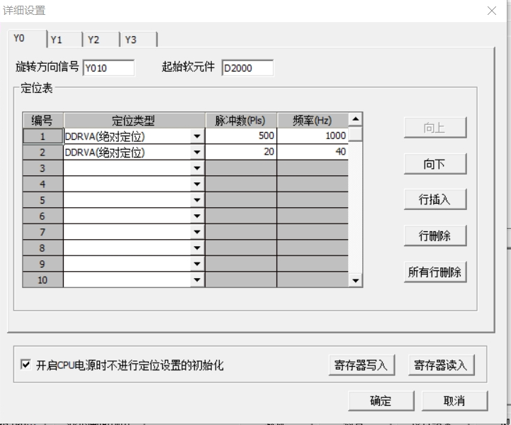 如圖所示,內(nèi)置定位參數(shù)下方有個(gè)     ▢開(kāi)啟CPU電源時(shí)不進(jìn)行定位設(shè)置初始化                后面有兩個(gè)按鈕     寄存器寫(xiě)入    寄存器讀取