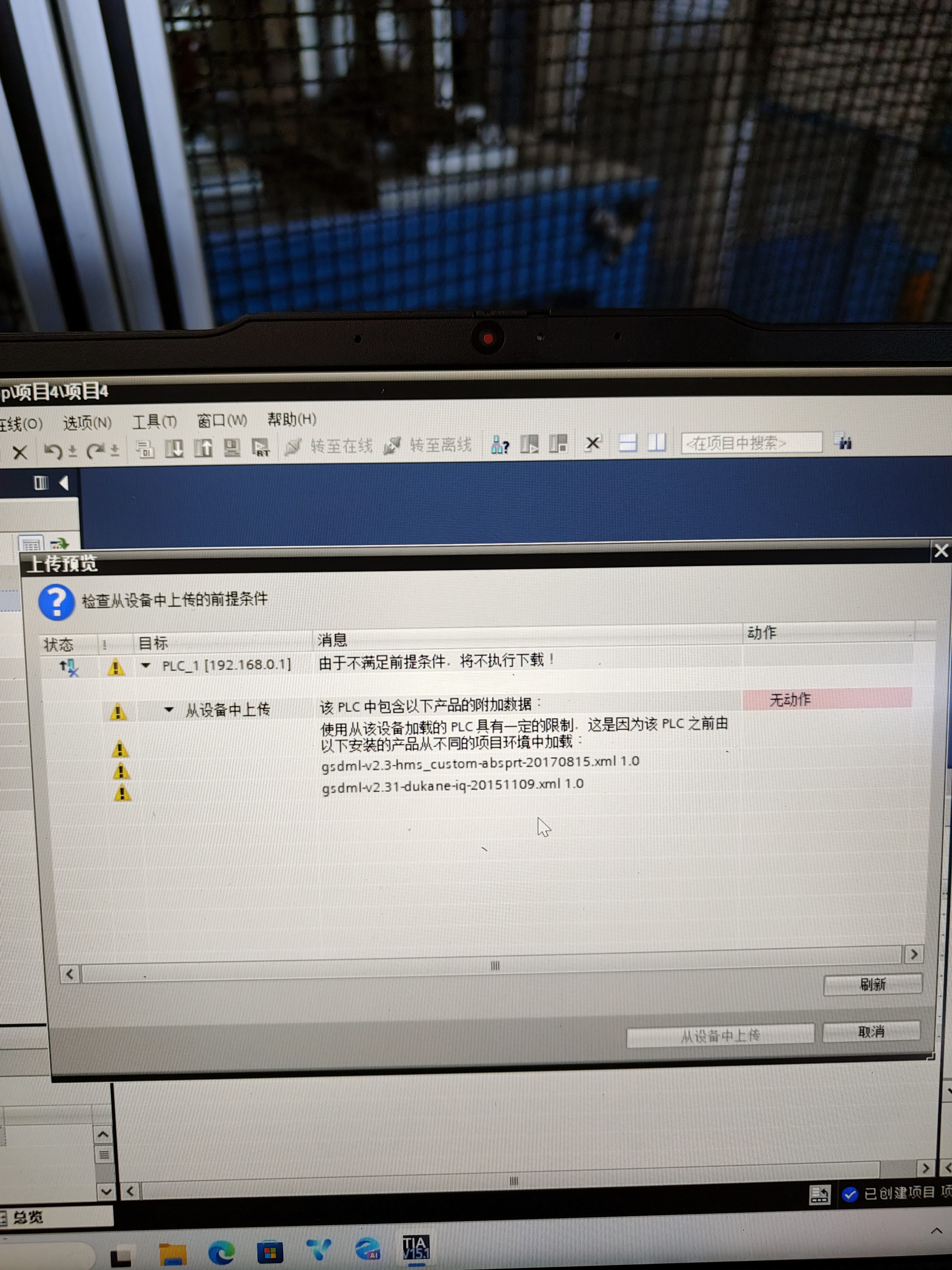 你點下紅色無動作,選初始化后,下面的從設(shè)備上傳應(yīng)該可以點,點了之后會自動加載源程序中的GSD文件