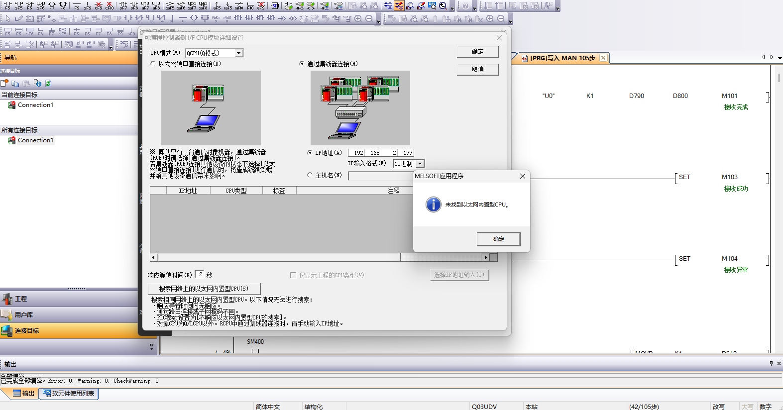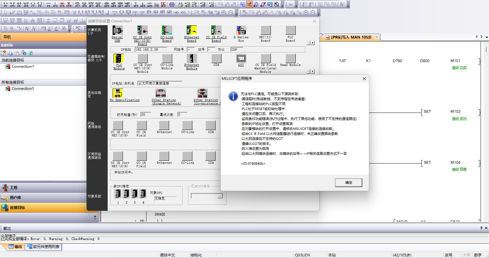 描述:現(xiàn)場(chǎng)Q系列PLC IP地址可以ping通