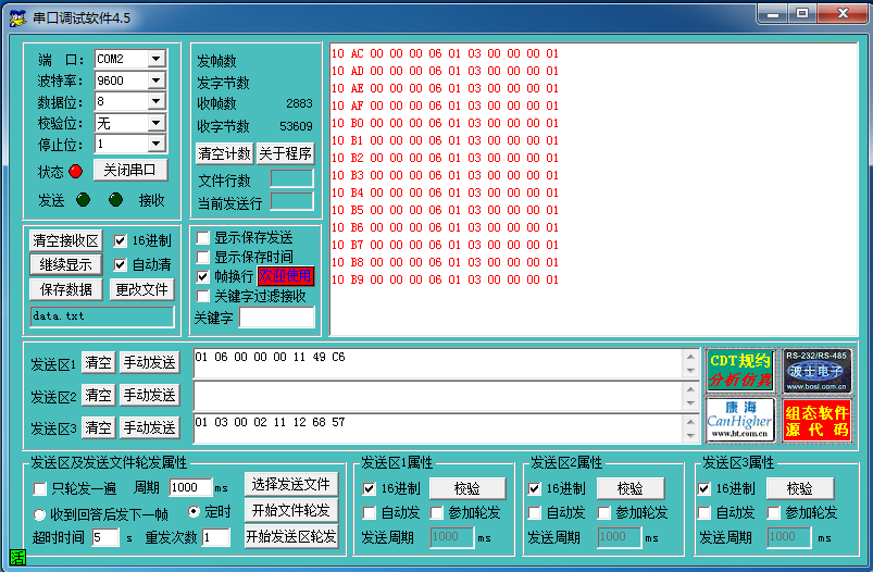都設置好后監控串口服務器的485接口