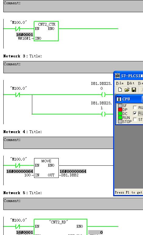 實話說,我也沒有在仿真中用過 ![]() 最好接上實體硬件試試,只要硬件無故障,那么DB中的數值就會變化。 要模擬其他的程序,就直接當它是好用的就行啦。。。直接改掉DB1中的數值。 |