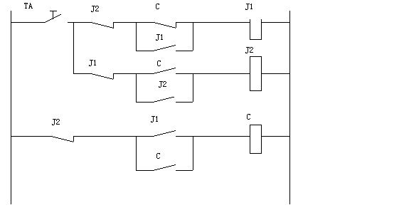 有幾個工控論壇上說用一個按鈕隨便你用幾個繼電器組成一個單按鈕起停的題目。本人看到后做了一個圖。用了三個繼電器。