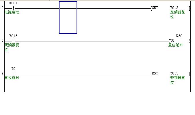 引用引用第1樓sjm213于2009-02-20 17:06發(fā)表的 :要看Y013實(shí)際上接的變頻器那個端子。該程序應(yīng)該是起到設(shè)備上電后消除變頻器報警的作用。Y013是變頻器的復(fù)位端子(RES)的輸出信號。.......