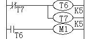 開始,T7常閉接通,T6和T7都開始計時,0.5s后,T6接通,可這時T7時間也到了,接通,T7常閉斷開,T6線圈失電,常開觸點保持斷開,無法使M1線圈上電,也無法振蕩。