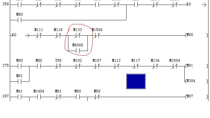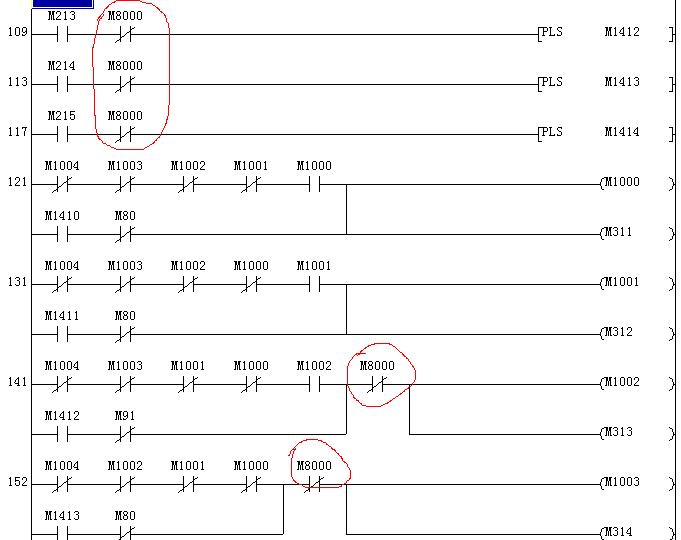 十分不解下面兩圖中紅線處M8000的用法!此程序來(lái)源自本論壇。