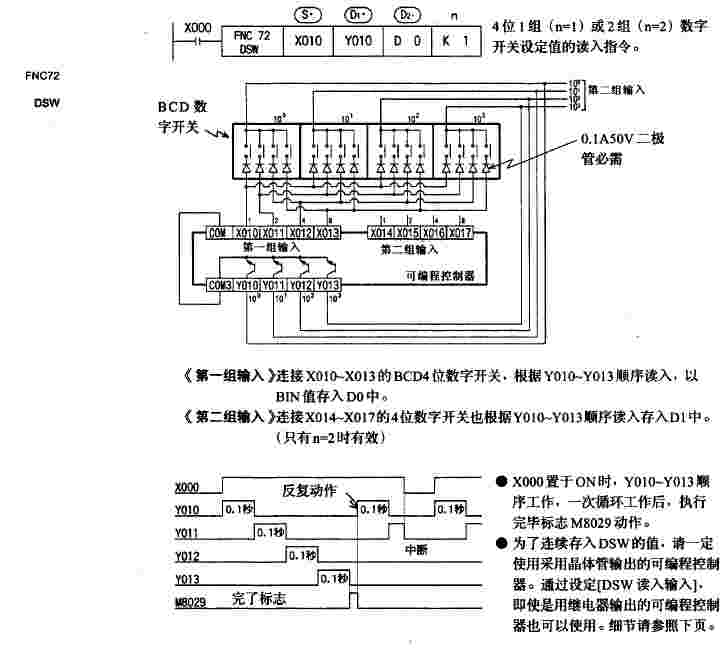 就是把0-9用四位二進制代碼有y0-y3表示出來!用線圈和指令麻煩一點!用傳送指令就簡單多了!