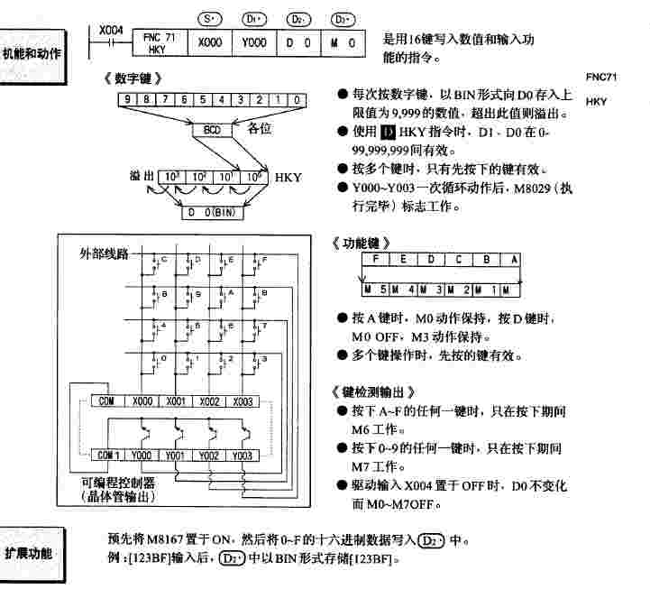 由于是新學,在書上碰到一道題,說用接在X0---X11輸入端的確良10個鍵輸入十進制數數0----9,將它們用二進制數據的形式存放在