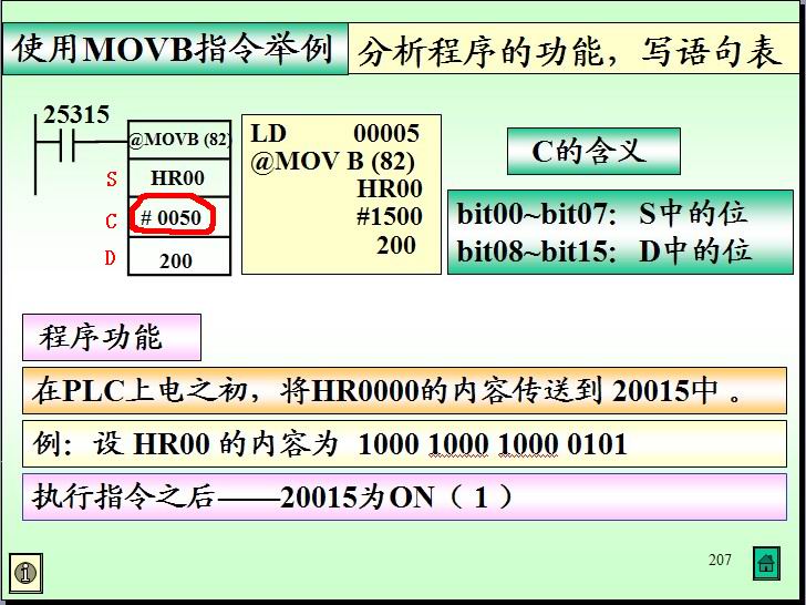 按其中文含義,要將HR的第0位傳送給200的第15位,其控制字應該為#0F00