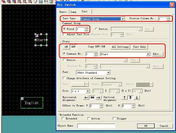 三菱GOT可以使用注釋組實現(xiàn)多國語言的選擇