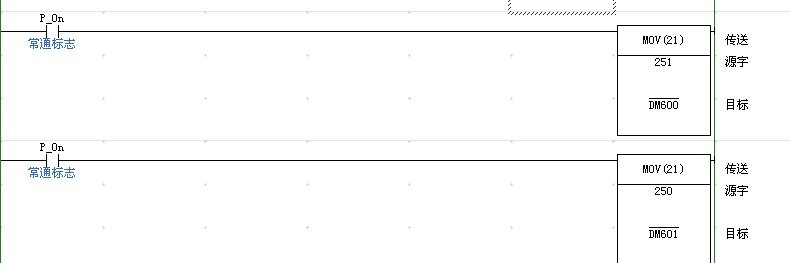 路過,就是PLC一上電運行就把250通道里的數值傳誦到DM601這個數據存儲區,而251的傳送到DM600那里。