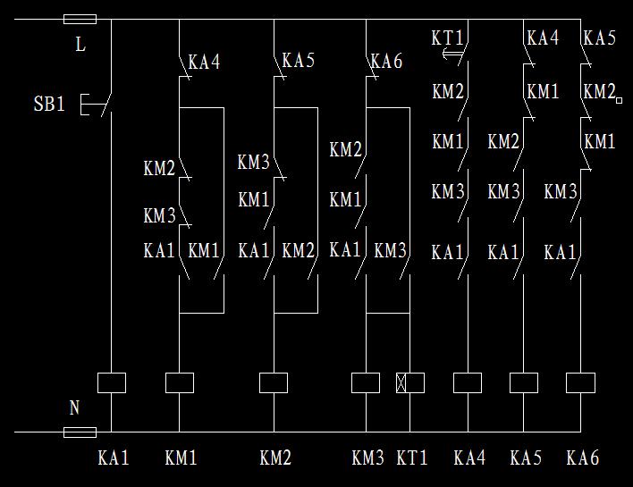 繼電器控制原理圖,如果接觸器輔助觸點(diǎn)不夠,線圈上并繼電器。