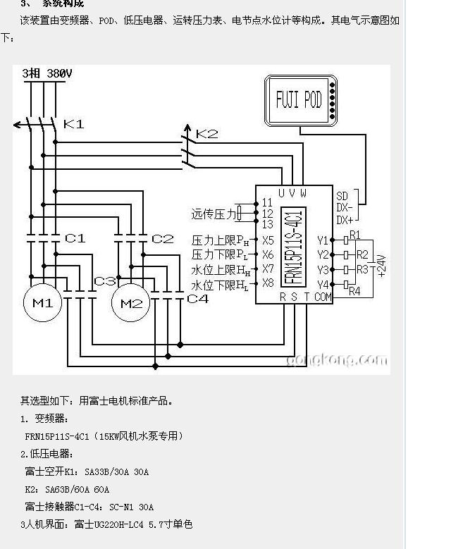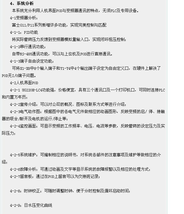 富士的人機界面觸摸屏與變頻器采用通訊的方式來驅動深井泵電動機,其通訊的形式具有簡單可靠的特點。該產品已經實際在其它工業領域中得到了應用與發展。一個RJ45端口連接到控制多臺變頻器的485總線上。用POD來對變頻器控制參數進行顯示和修改參數,每一個變頻器都要占用一個地址;其中源地址和目的地址分別為本信息的來源和目的站的地址;而地址是485總線上區分不同站的唯一標志;信息類型編碼用來區分不同的信息如查詢頻率、電流、設定頻率,起始字節用于一個信息的開始,通訊協議為主從方式如主站POD從站變頻器,只準主站POD向從站變頻器發送命令,而從站的變頻器只能對主站POD的命令予以回復,而不能向主站發起命令。