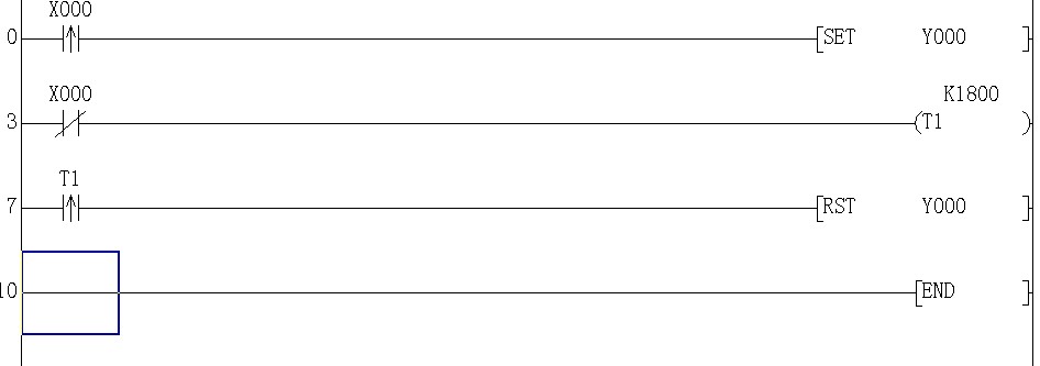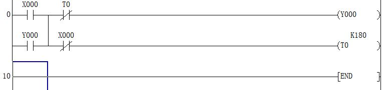 如,當X0接通時,Y0馬上得點,當X0斷開時,Y0延時3分鐘斷電