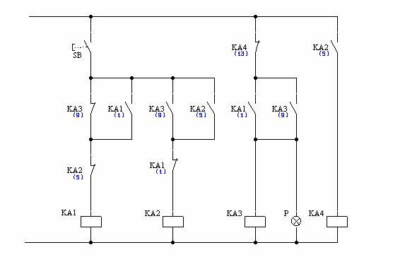 另一端接電源的地,再用JI 的一組常開觸點(diǎn)與按鈕K 并聯(lián)。(2)、J2線圈一端接電源+,另一端串接J3 的常開觸點(diǎn),再串接按鈕K,再