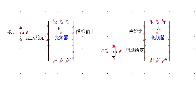 直接用一個電位器控制A線的變頻器,PLC采集A線變頻器的模擬信號再加上預先算出來的K值就是B線里速度了。