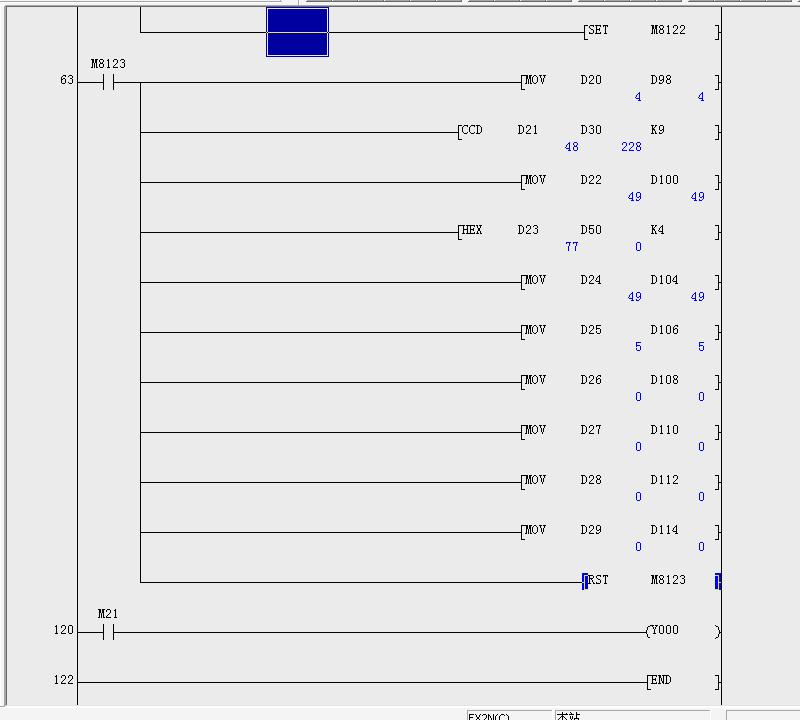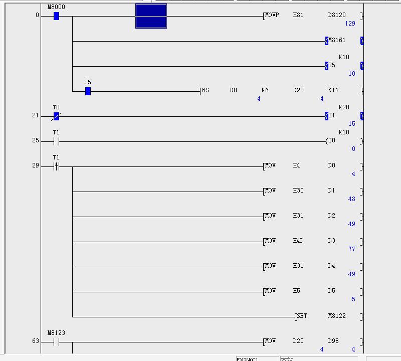你的程序有問題,你發(fā)送數(shù)據(jù)的RS指令最好把接收的D設(shè)為K0,然后讀取數(shù)據(jù)的時候再新建一條RS指令,但是要用時間差來錯開,以免兩條RS指令同時驅(qū)動會不行。