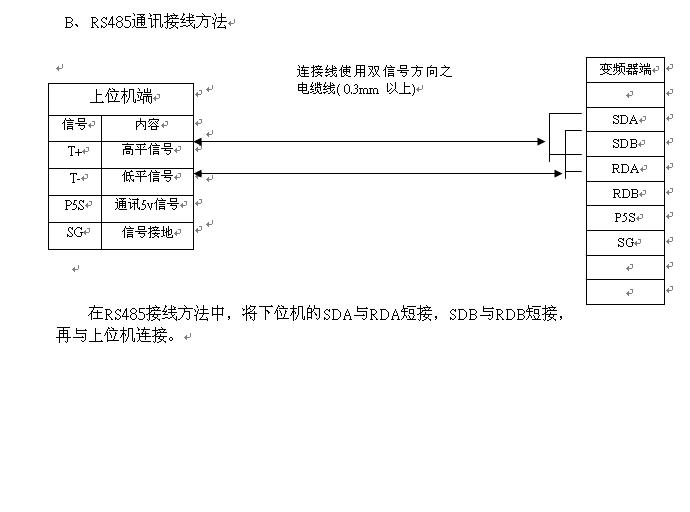 昨天做一個工程,使用FX2N_PLC與FX2N-485-BD再與DELTA(臺達)VFD-B變頻器通信,以前沒用過這種變頻器,搞到今天還沒弄明白變頻器端RJ-11的EV,GND,SG-,SG+與FX2N-485-BD通信板RDA,RDB,SDA,SDB,SG到底該怎么接線?變頻器說明書上也沒有說清楚.請問知道的同行能幫幫忙告訴我嗎?非常謝謝!