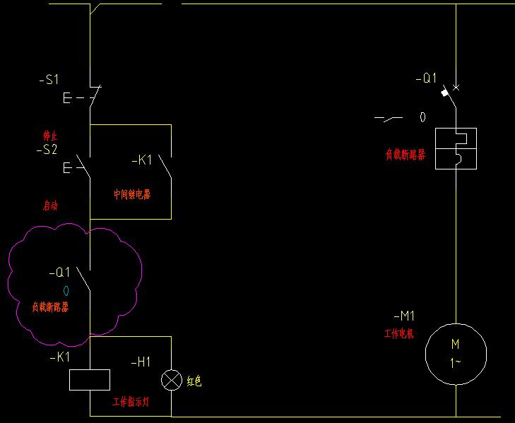從你的圖里所看到的就是:當開關跳了后,工作指示燈H1也會滅,可以提醒操作員有電機故障了,而不會說開關跳了工作指示燈還亮。