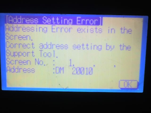 畫面1中的DM20010有錯誤。檢查一下里面的參數,是不是和PLC對應。