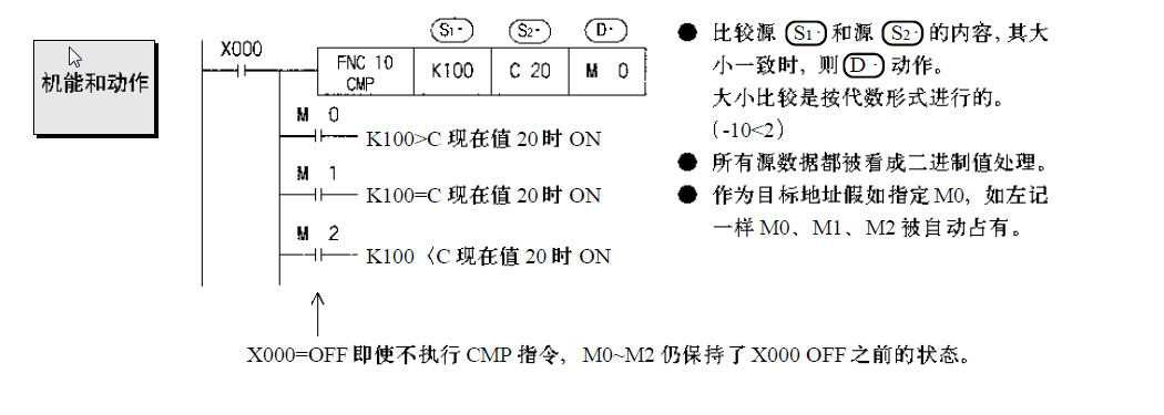 D8018中的內容與常數7比較,比較結果驅動M1024,M1025,M1026,D8018>7時,M1024置位, D8018=7時,M1025置位, D8018<7時,M1026置位.