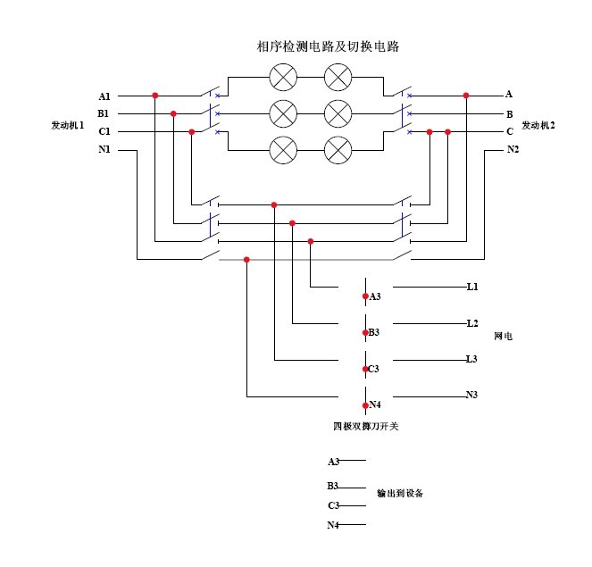 1樓正解,但是要注意相序 電壓 頻率,最好自己做一個完整的切換電路,可單機 可并網。如果沒有相序檢測儀器。就用6個電壓220V 40W的普通照明燈泡代替。具體做法是見圖(開關合上后燈泡不亮表示相序正確)如果樓主及各位同仁覺得可以請頂并加分。